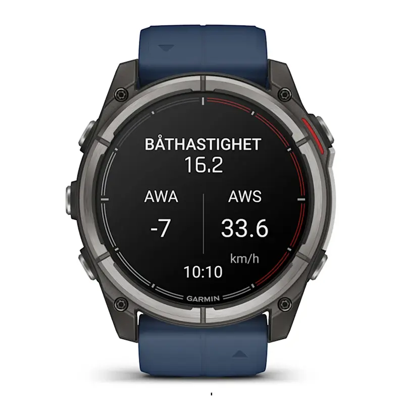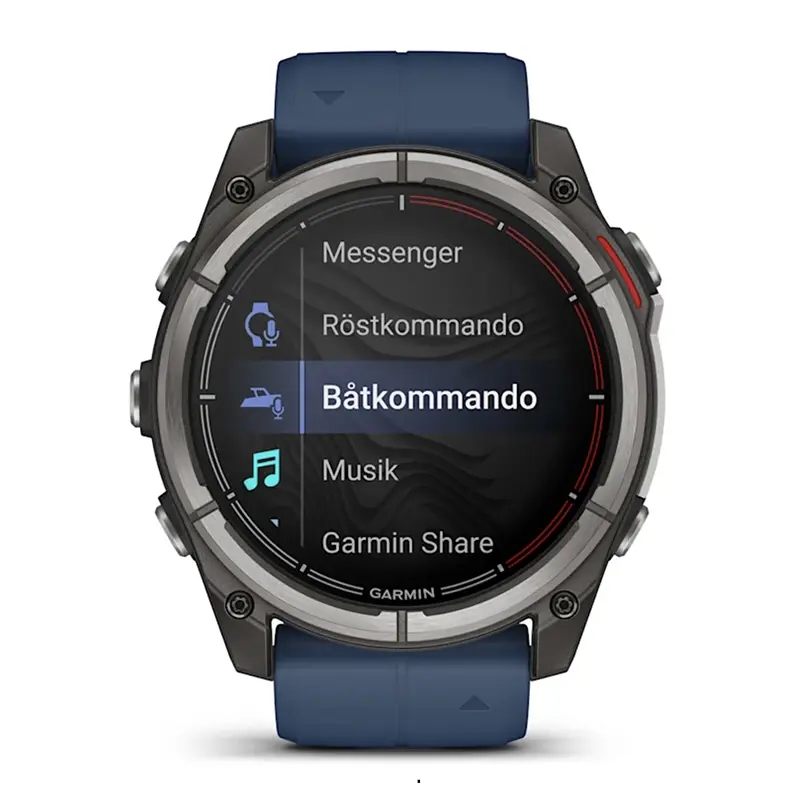 Garmin Quatix 8 er et maritimt smartwatch med GPS, lysstærk 1,4″ AMOLED-skærm og LED-lommelygte, som har alle de funktioner, du ønsker, både ved styrepulten og på land.