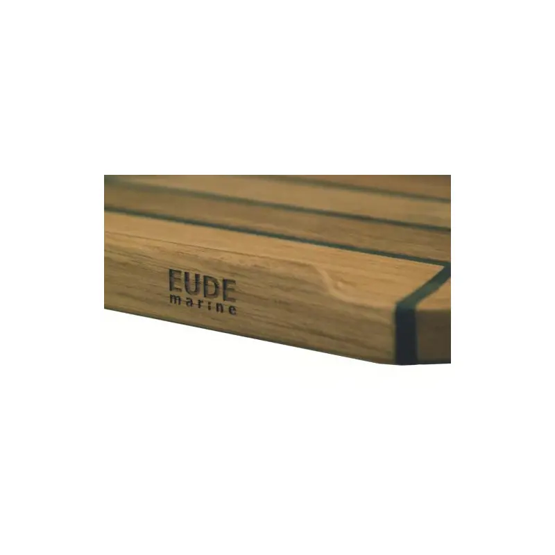Højkvalitets bordplade med teaklister i standard Eude-design. Skiven har skårne, lige hjørner med kantlister på 16 mm højde og 9 mm bredde. Al teak stammer fra statskontrollerede plantager på Java. Den solide konstruktion sikrer, at bordpladen tåler de hårde krav fra livet på vandet uden at slå sig eller blive ujævn på overfladen, da det ikke er finér.